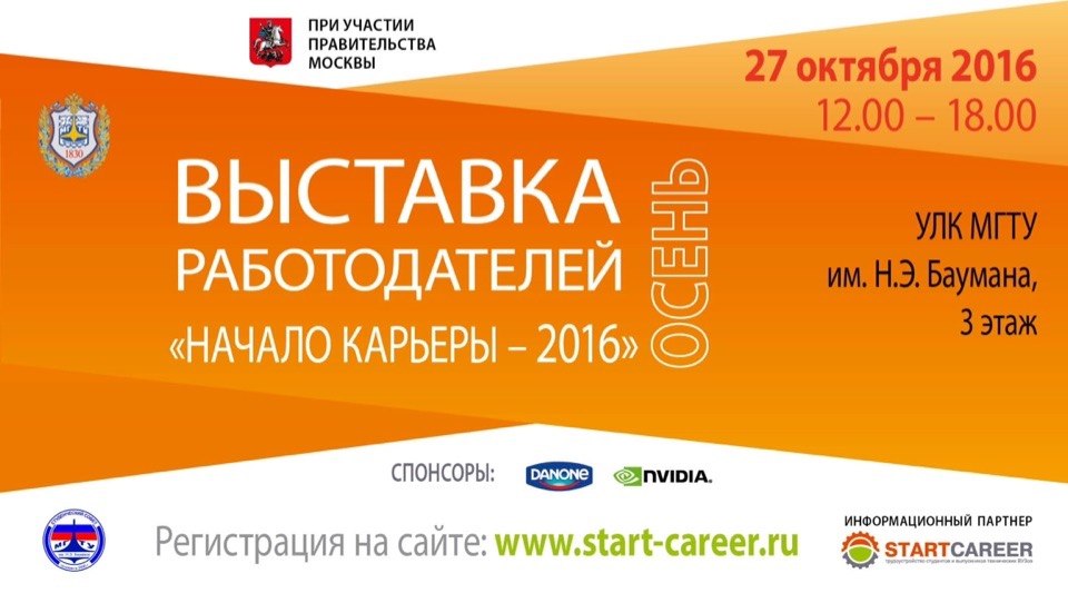 27 октября 2016 года в МГТУ им. Н.Э. Баумана для студентов и будущих выпускников пройдет ярмарка вакансий "Начало карьеры - 2016. Осень".